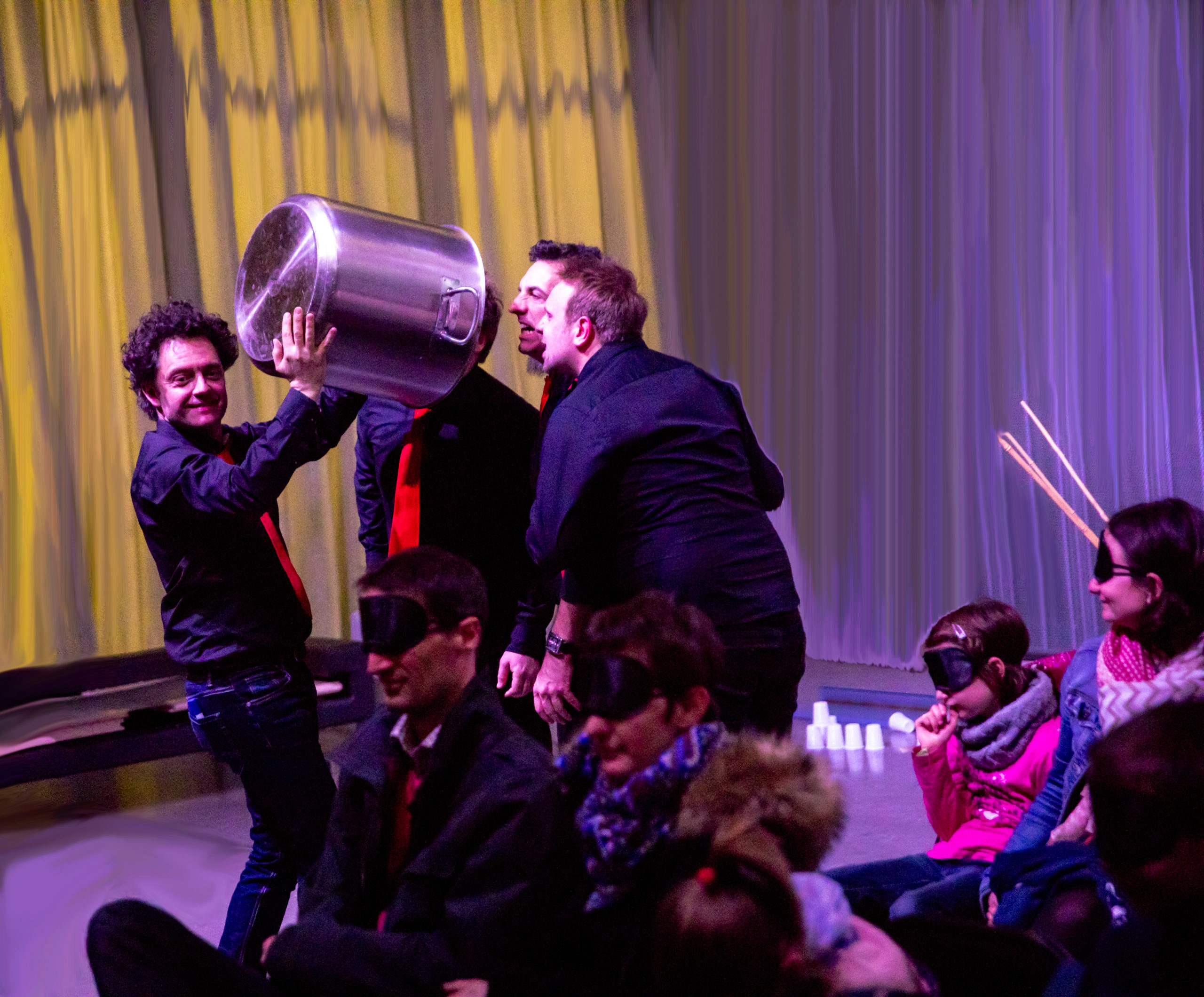 Munis de caches-yeux, les participants plongent dans une expérience sensorielle unique. Après avoir choisi les personnages et la quête de l’histoire, ils deviennent les auditeurs d’un conte radiophonique improvisé, interprété en direct par deux comédiens et un musicien. Pendant ce récit, des manipulateurs interviennent pour enrichir l’expérience à l’aide d’accessoires, créant des sensations olfactives et tactiles qui donnent vie à l’histoire de manière immersive et inédite.